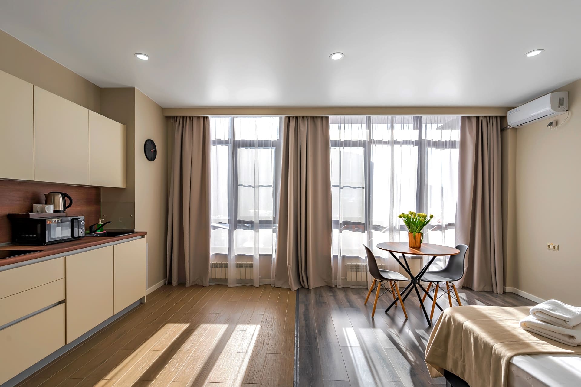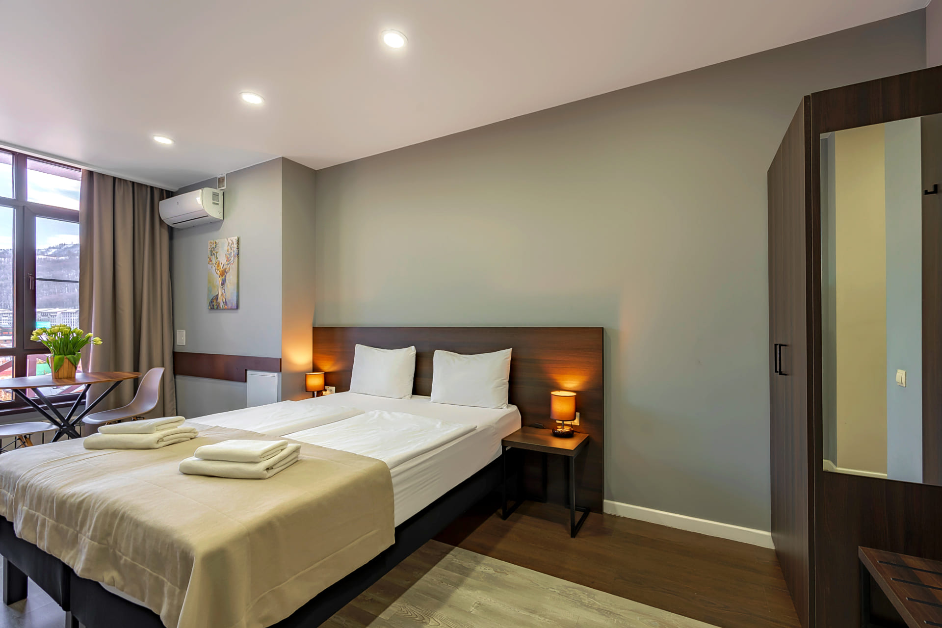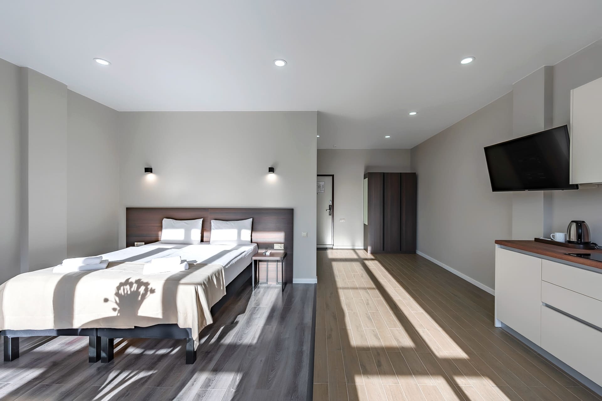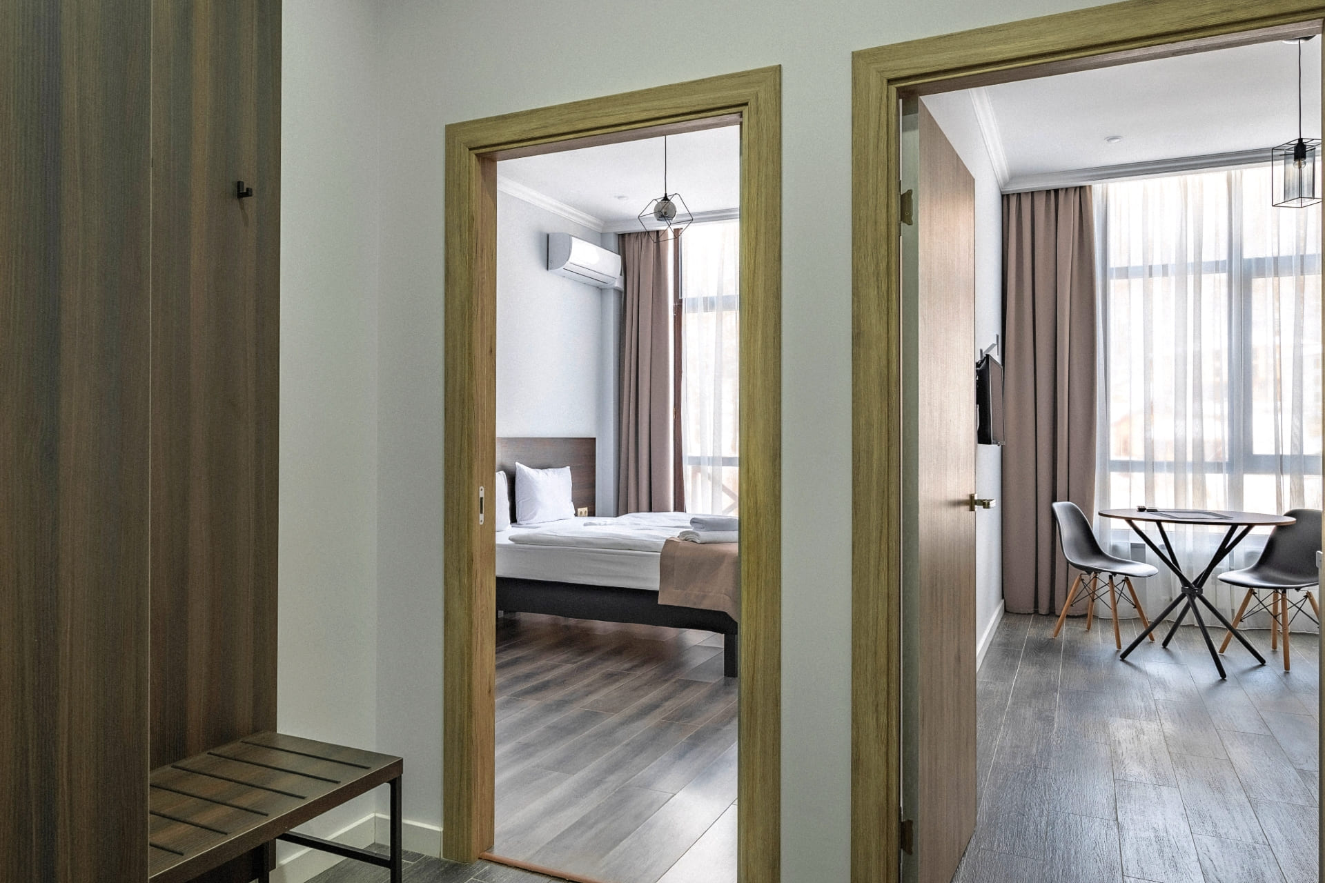 В отеле 7 категорий апартаментов, полностью оборудованных современной мебелью и необходимой техникой для комфортного пребывания, как во время отпуска или уикэнда, так и для долгосрочного проживания. Разрешено проживание с собаками весом до 5 кг за дополнительную оплату.