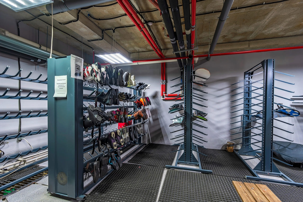 Для удобства гостей прямо на территории апарт-отеля Ламонт оборудована просторная лыжная комната. Помещение оборудовано современными сушилками, поэтому даже после самой снежной погоды наутро гостей ждет комфорт и удобство. Лыжная комната расположена на территории подземного паркинга и работает круглосуточно. Доступ осуществляется по карте гостя.