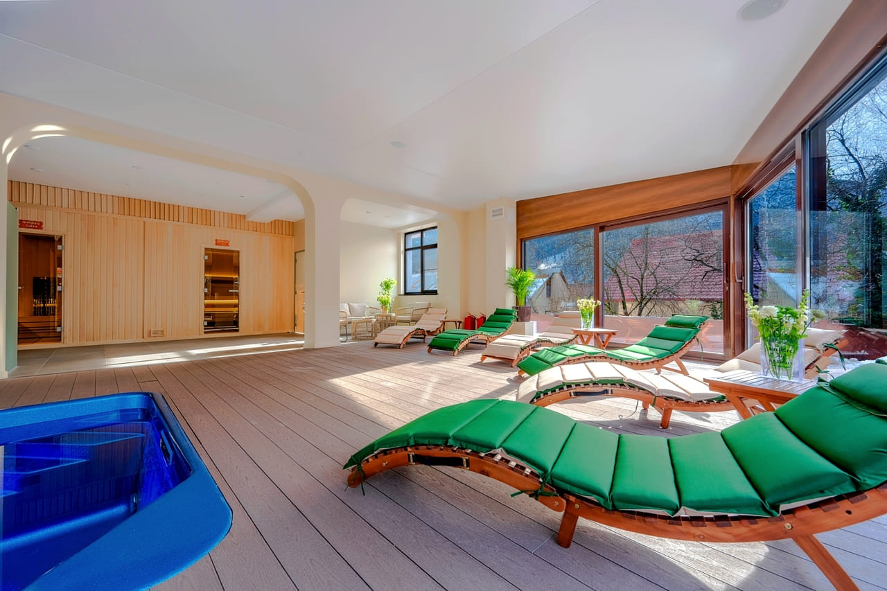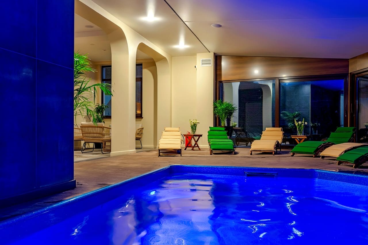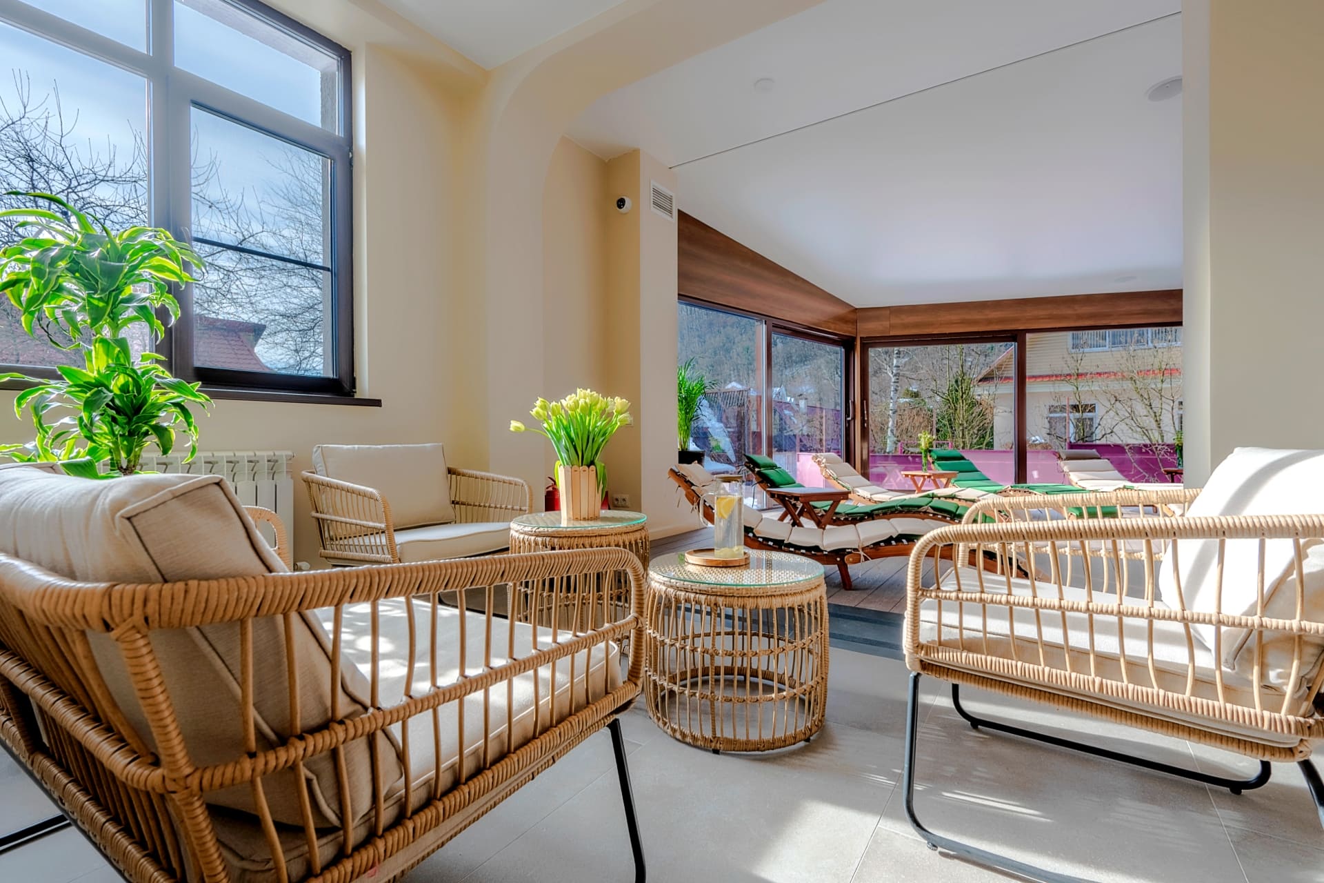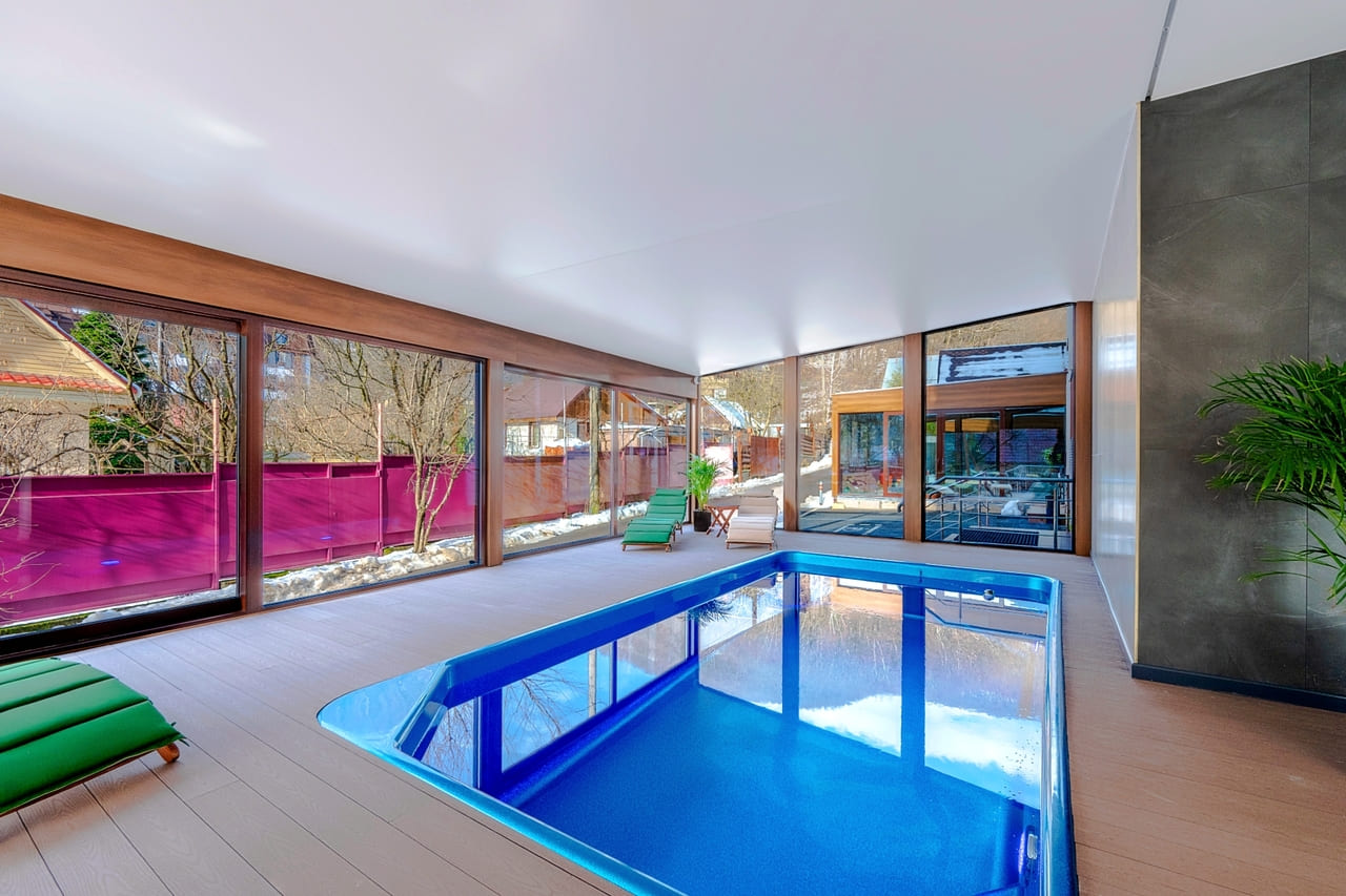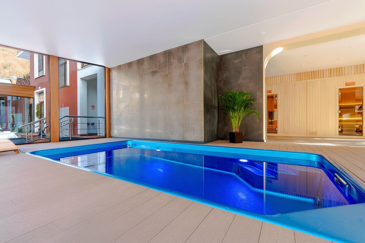 Термальная СПА-зона апарт-отеля LaMont позволяет отдохнуть от суеты и забот у тёплого бассейна в уютной зоне отдыха с панорамными окнами и попариться в банном комплексе.