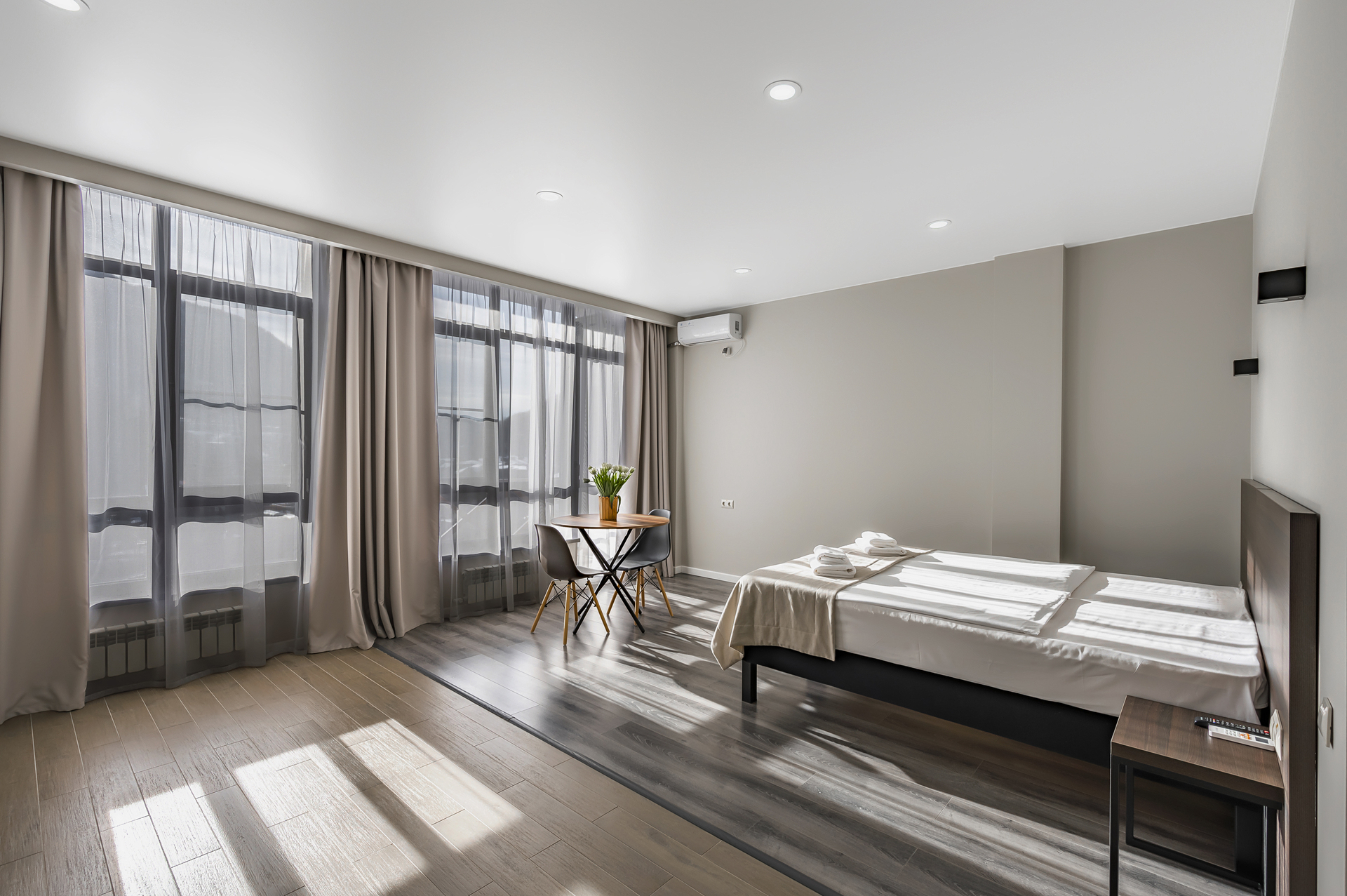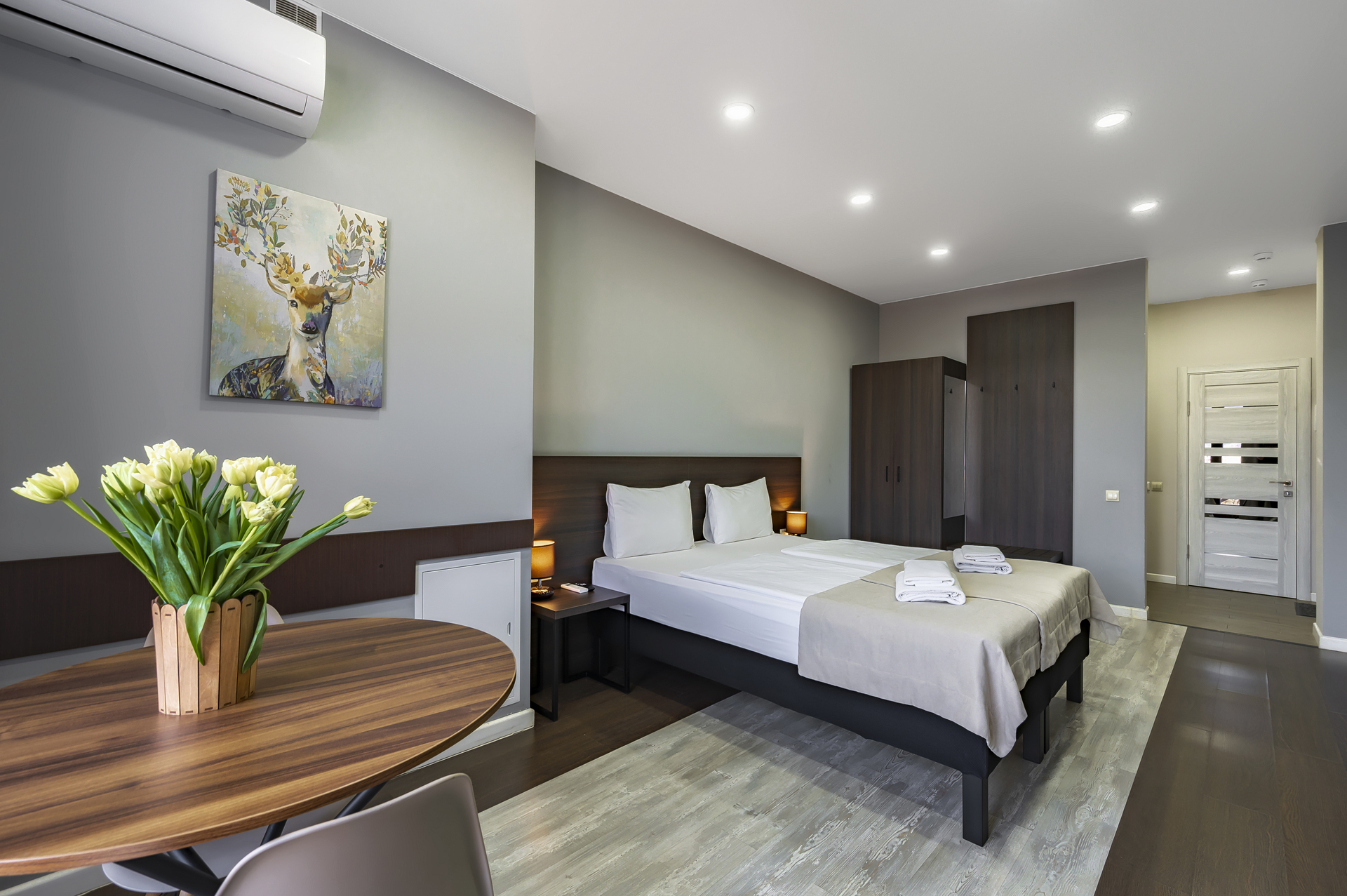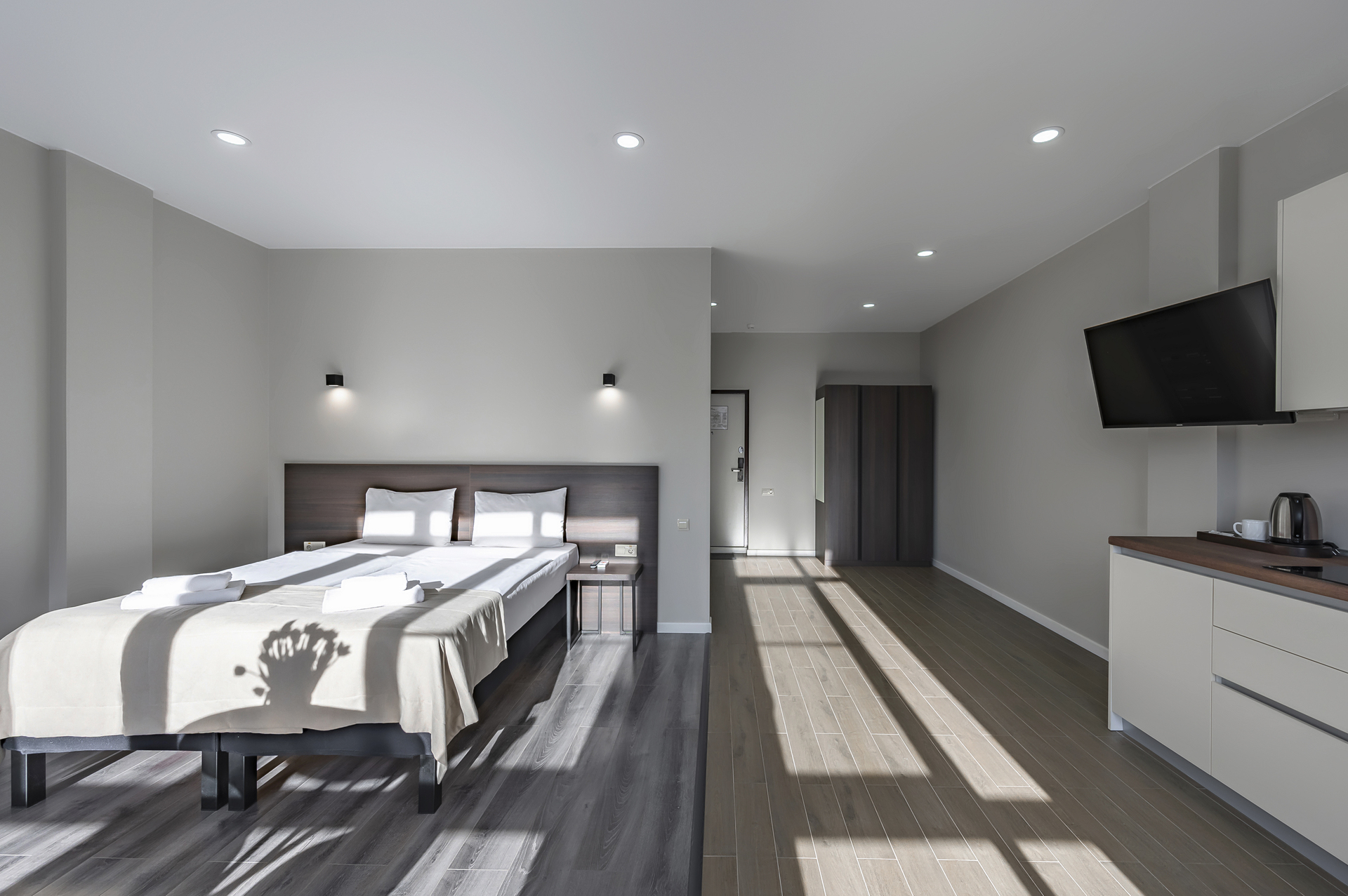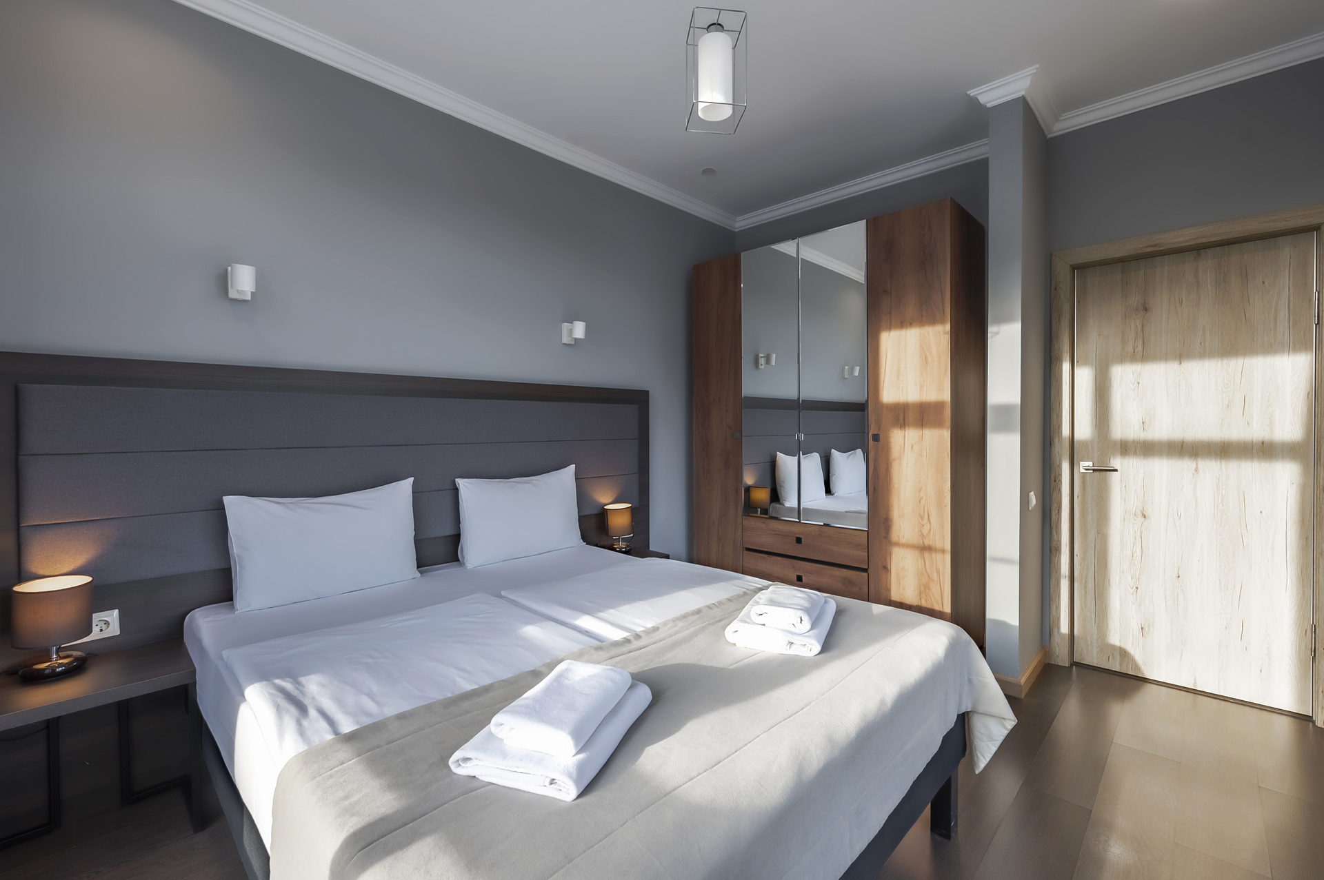 Комплекс апартаментов представлен шестью категориями номеров в актуальном стиле минимализм. Апартаменты полностью оборудованы современной мебелью и необходимой техникой для комфортного пребывания как во время отпуска или уикэнда, так и для долгосрочного проживания. Разрешено проживание с питомцами (собаки до 5 килограмм за дополнительную оплату).
