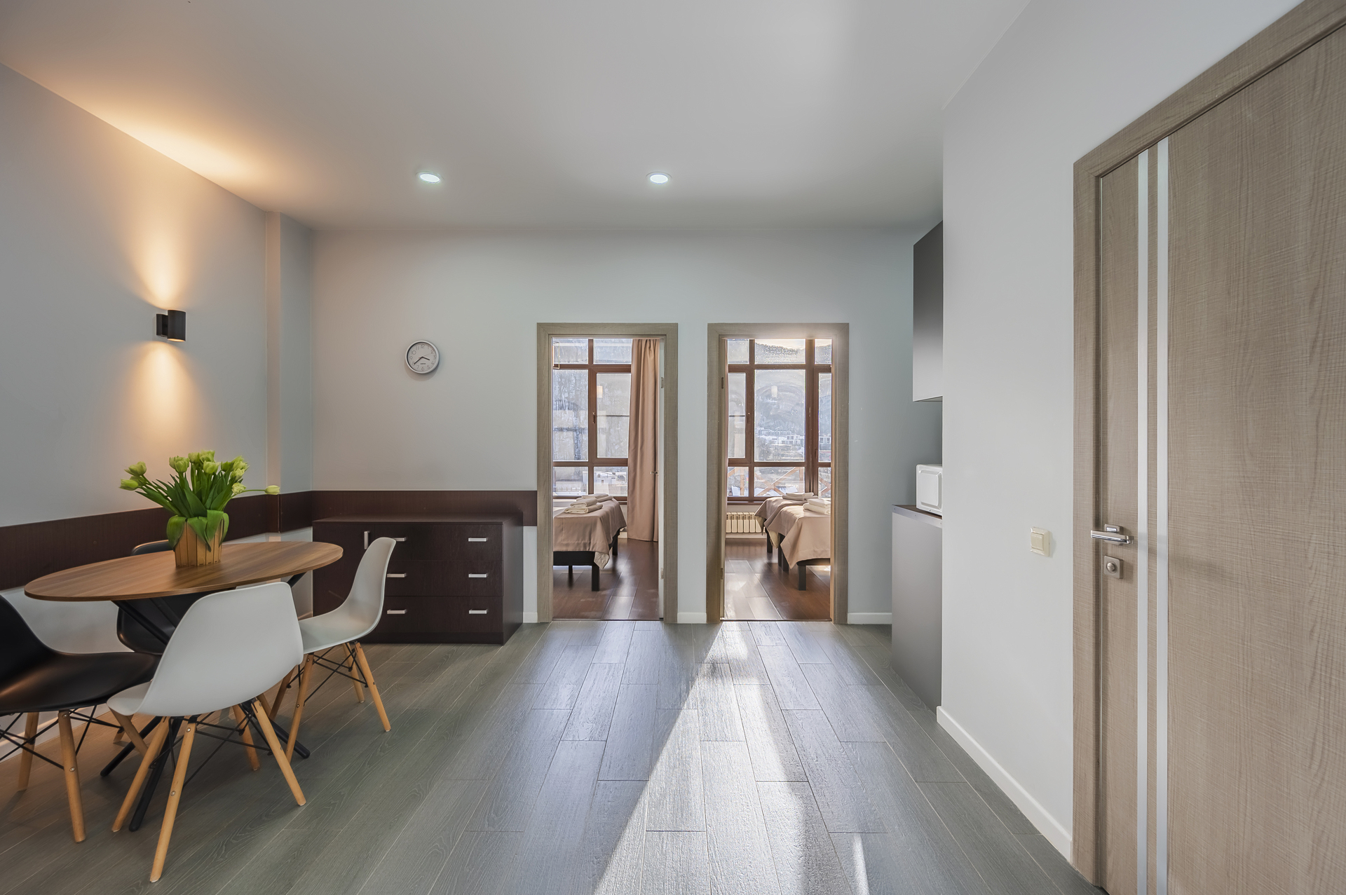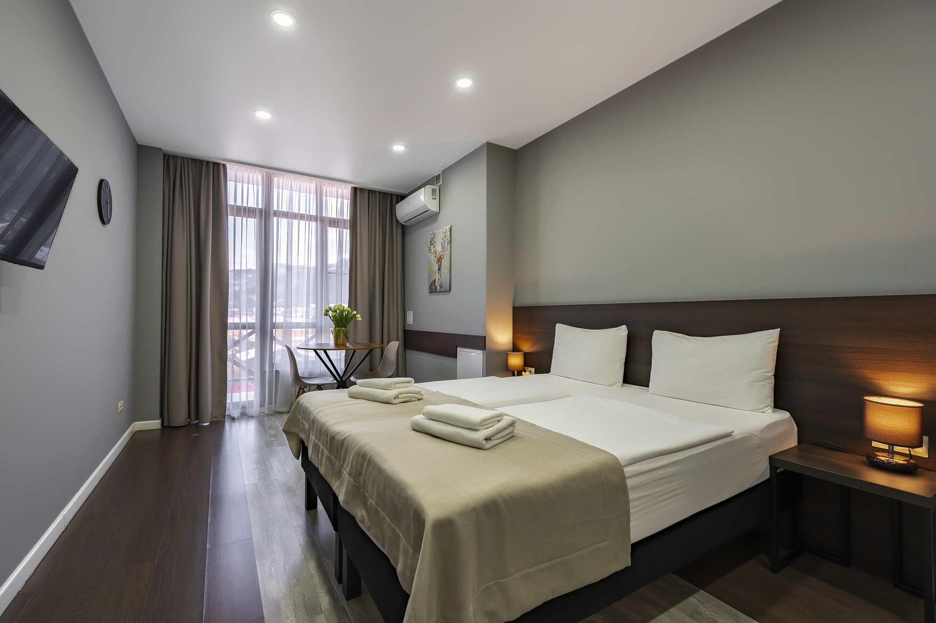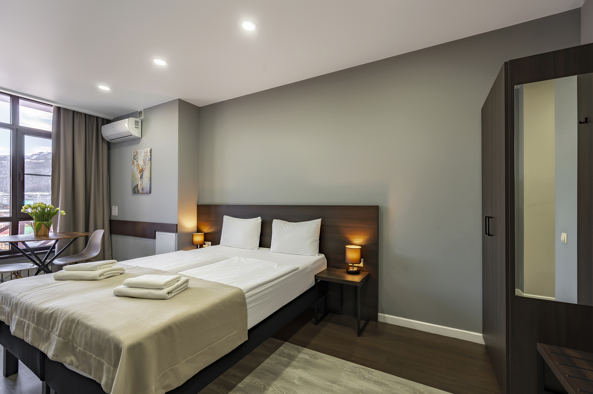 Комплекс апартаментов представлен шестью категориями номеров в актуальном стиле минимализм. Апартаменты полностью оборудованы современной мебелью и необходимой техникой для комфортного пребывания как во время отпуска или уикэнда, так и для долгосрочного проживания. Разрешено проживание с питомцами (собаки до 5 килограмм за дополнительную оплату).