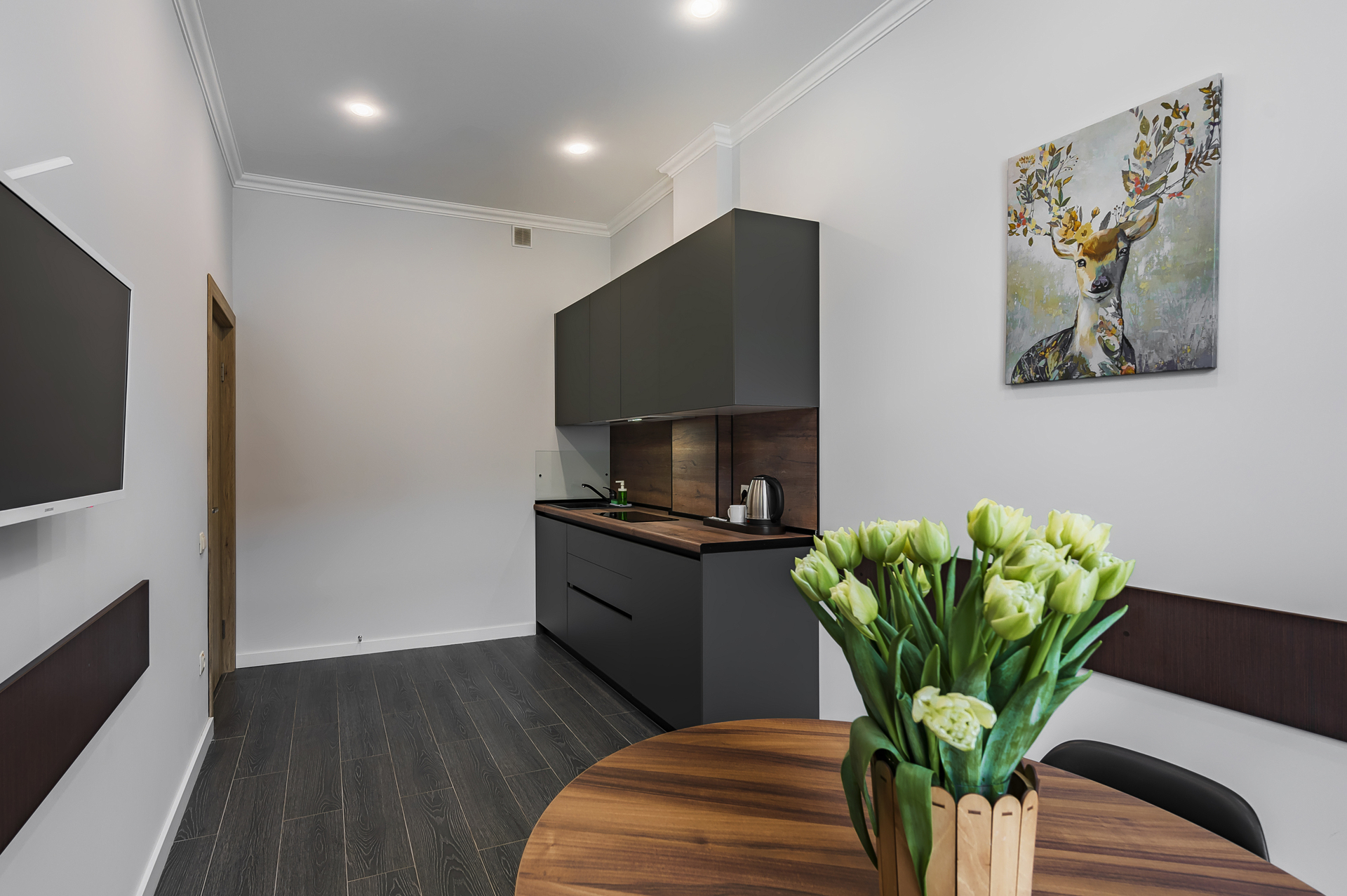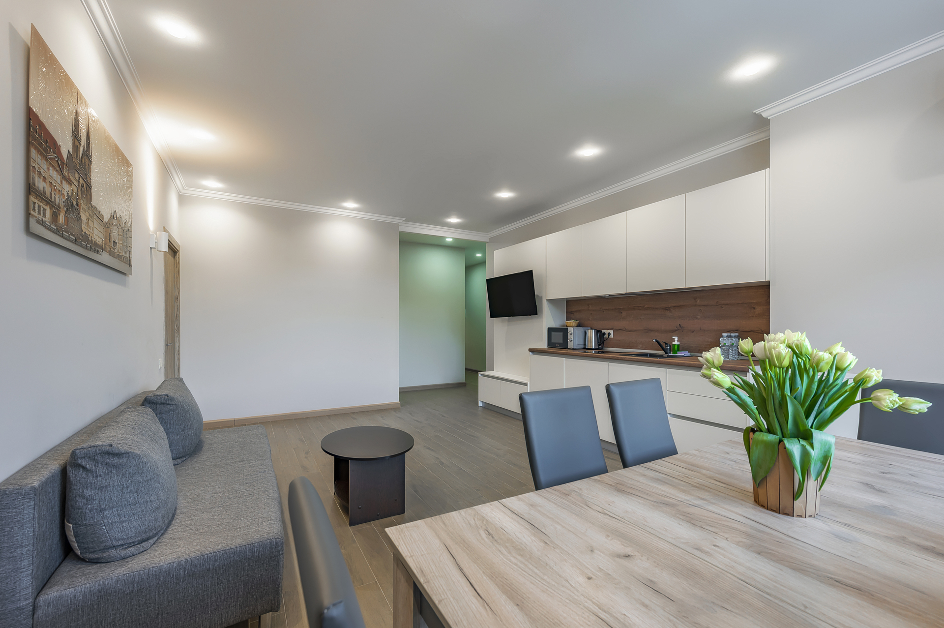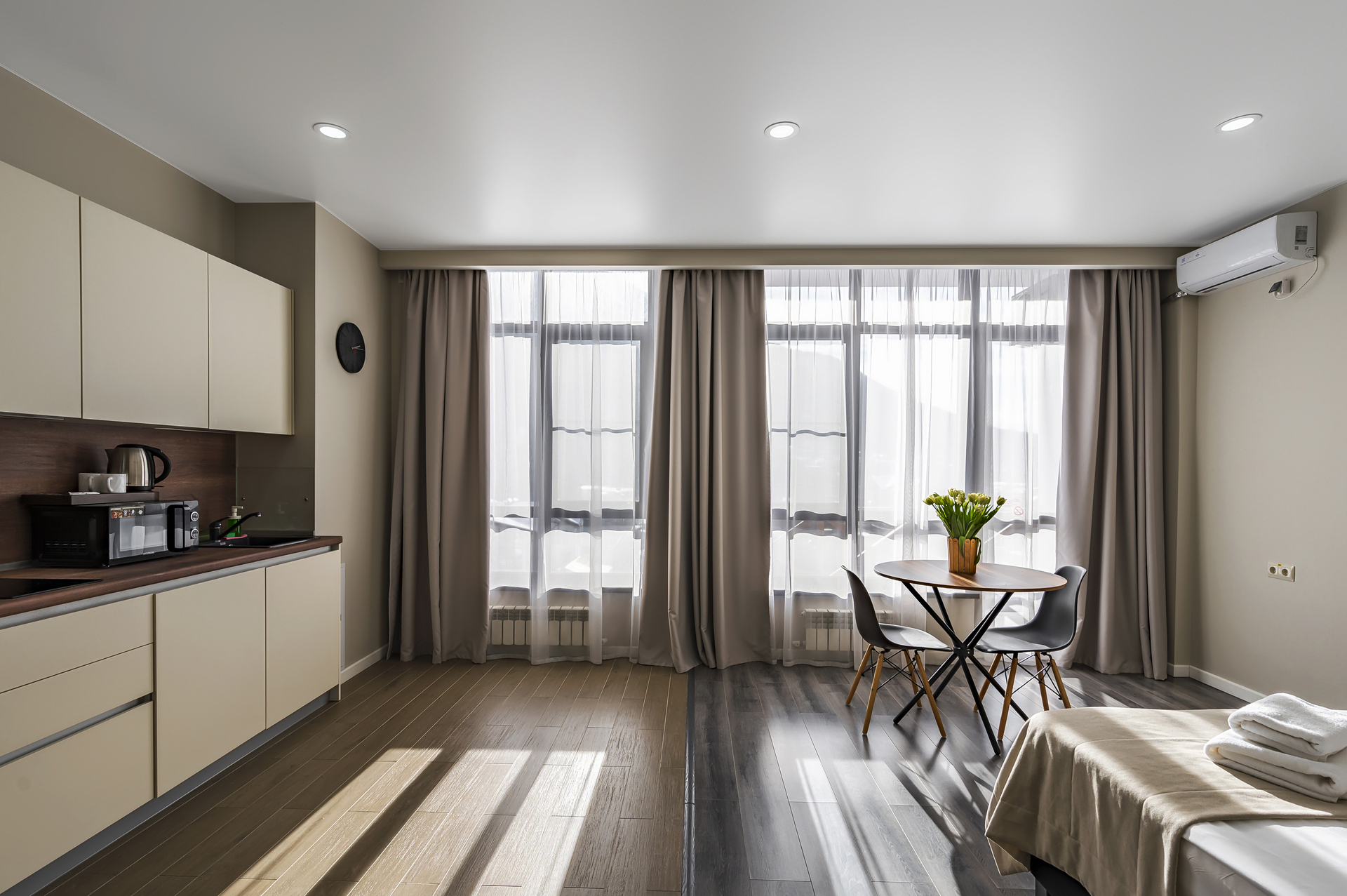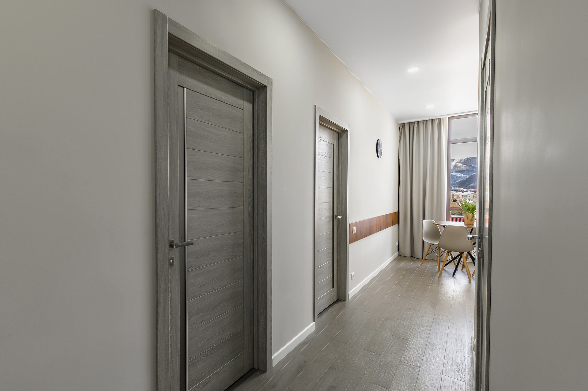Комплекс апартаментов представлен шестью категориями номеров в актуальном стиле минимализм. Апартаменты полностью оборудованы современной мебелью и необходимой техникой для комфортного пребывания как во время отпуска или уикэнда, так и для долгосрочного проживания. Разрешено проживание с питомцами (собаки до 5 килограмм за дополнительную оплату).