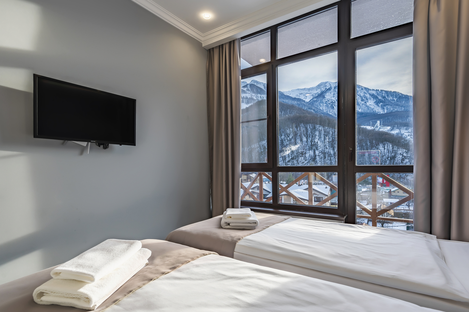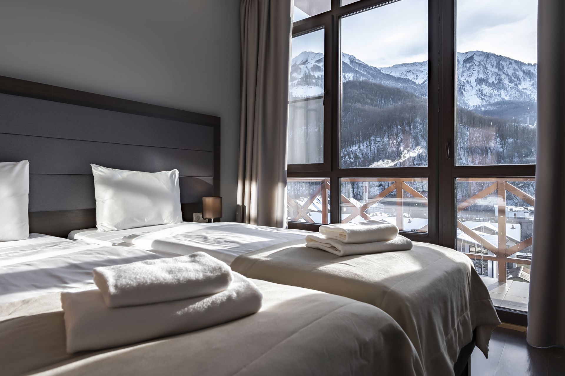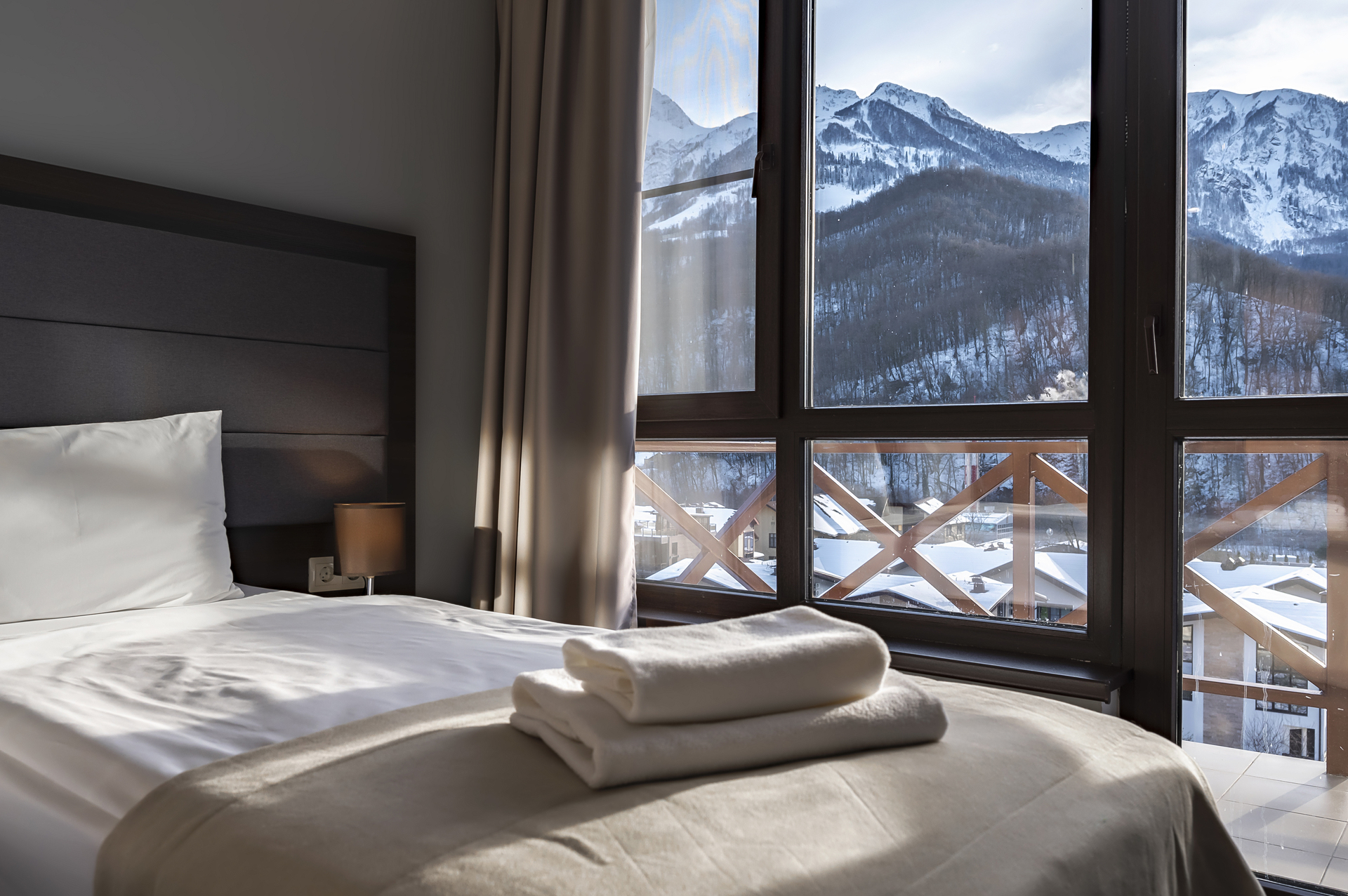 Потрясающие виды, кристальный горный воздух, первоклассный сервис и комфортные номера – залог вашего отличного отдыха в Красной Поляне.