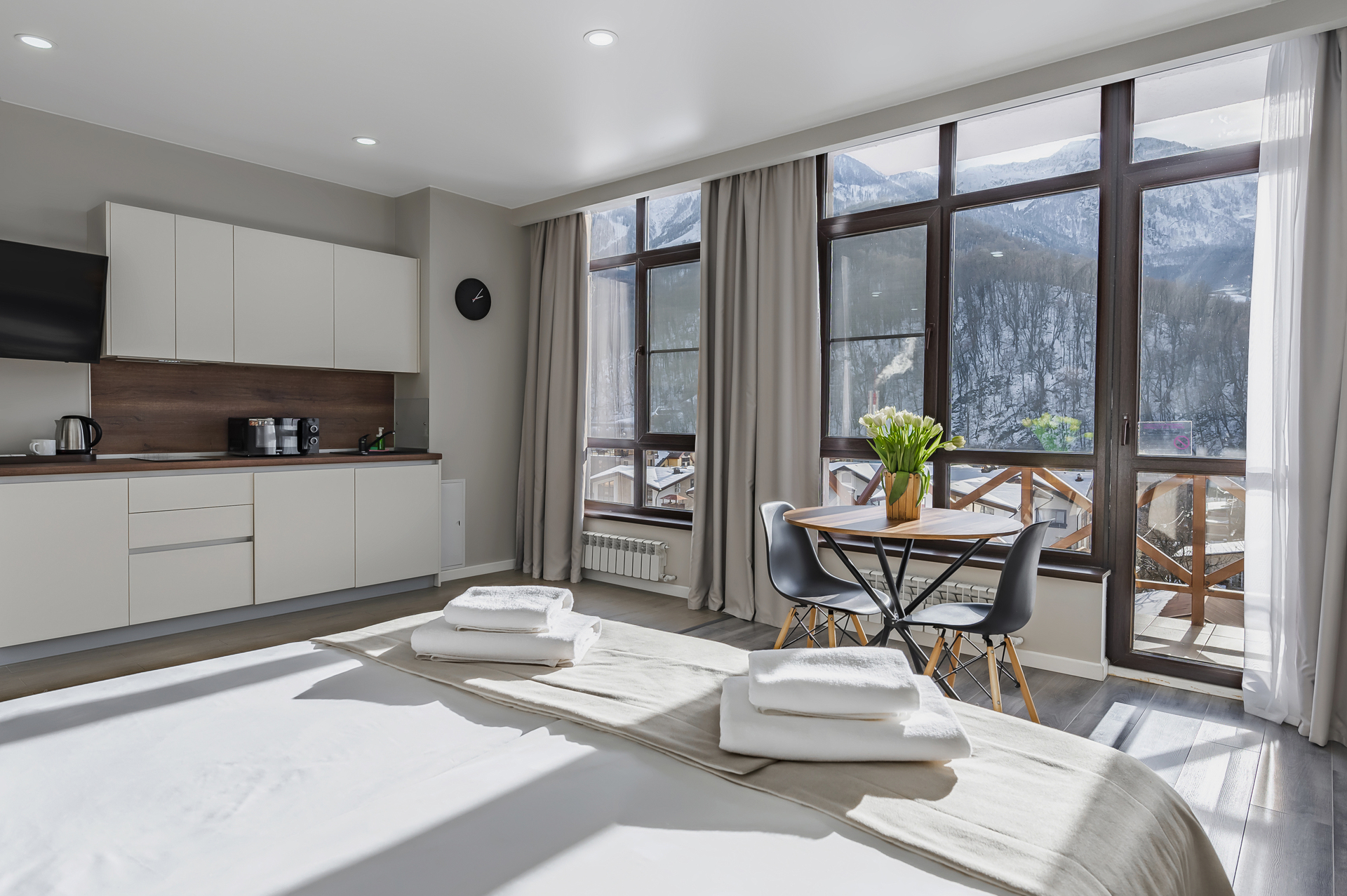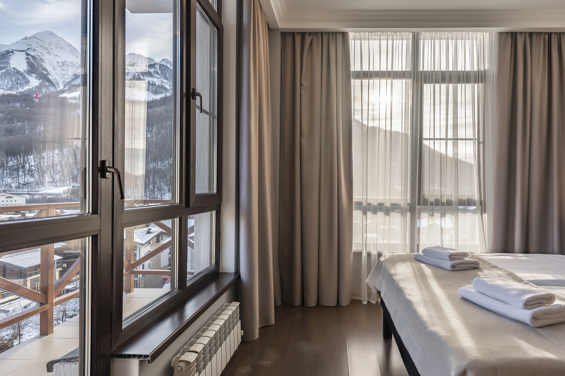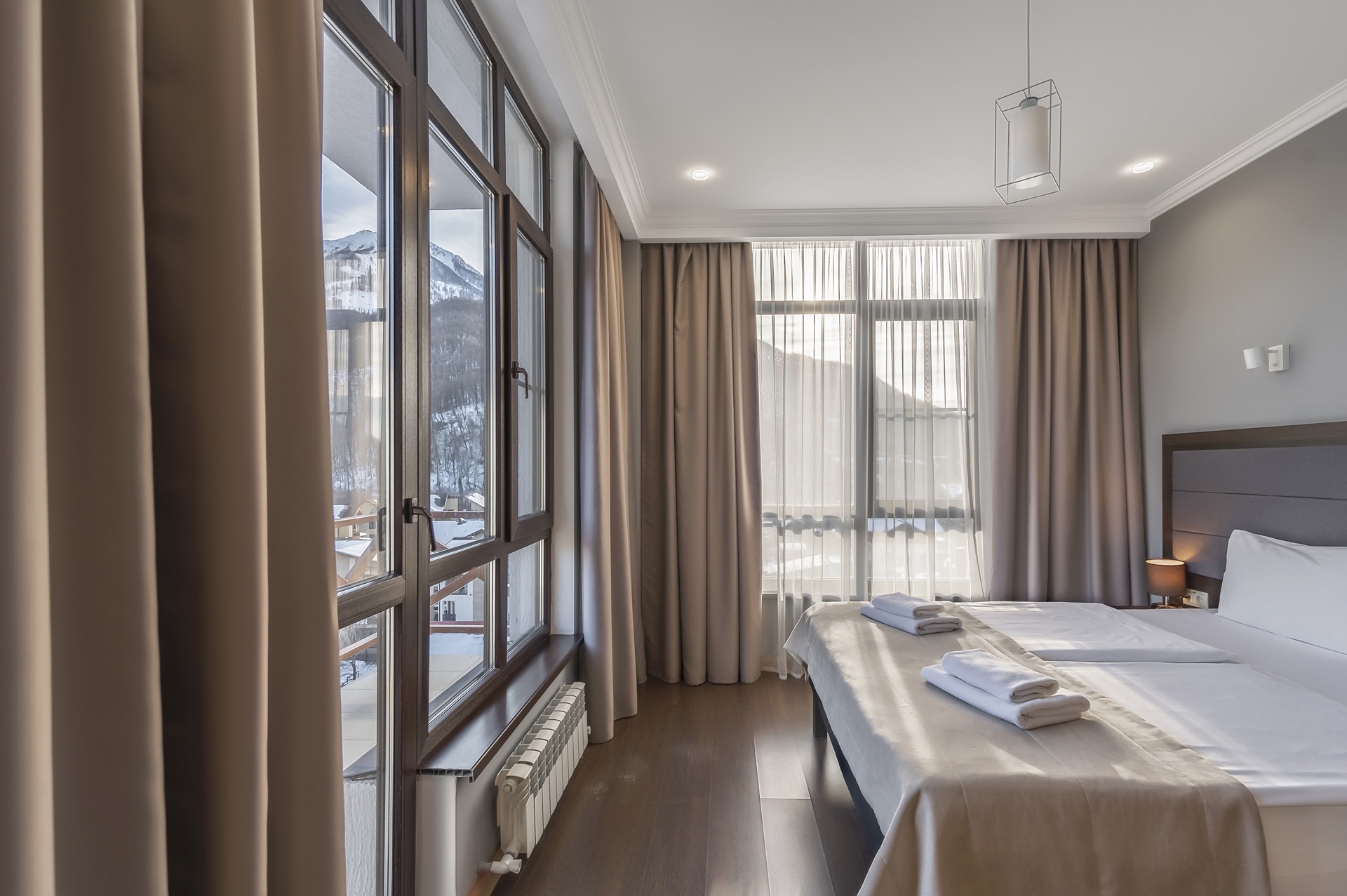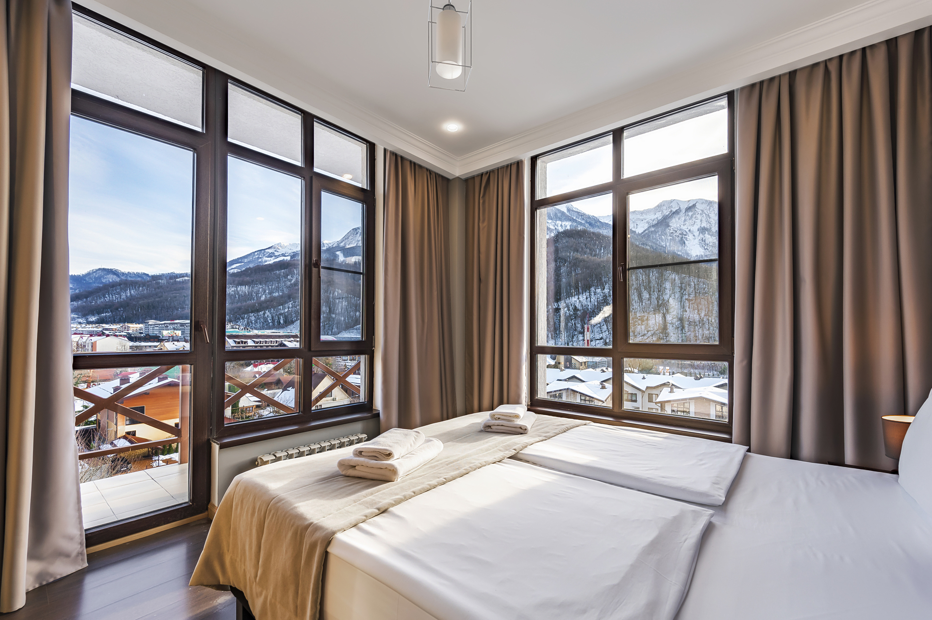 Потрясающие виды, кристальный горный воздух, первоклассный сервис и комфортные номера – залог вашего отличного отдыха в Красной Поляне.
