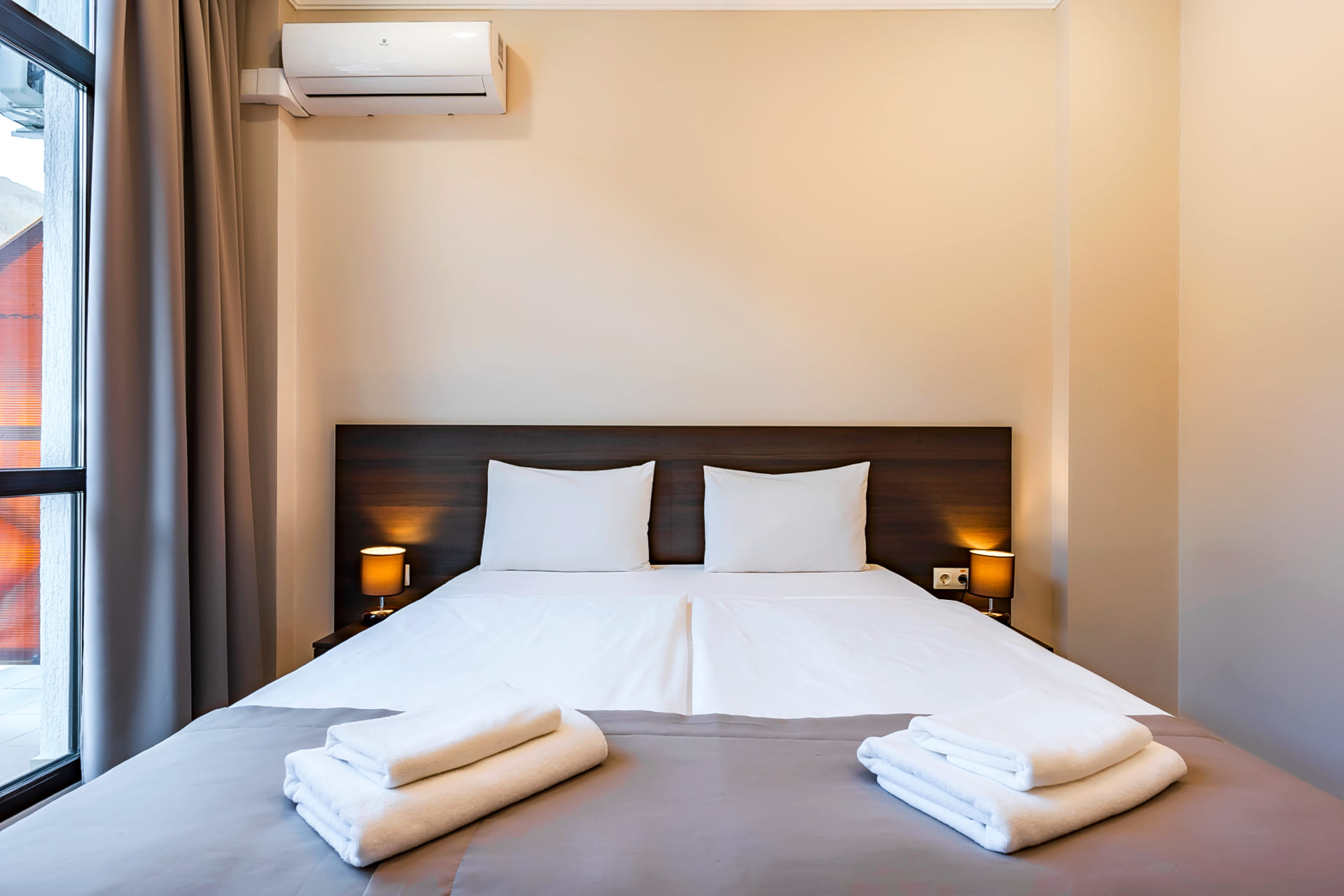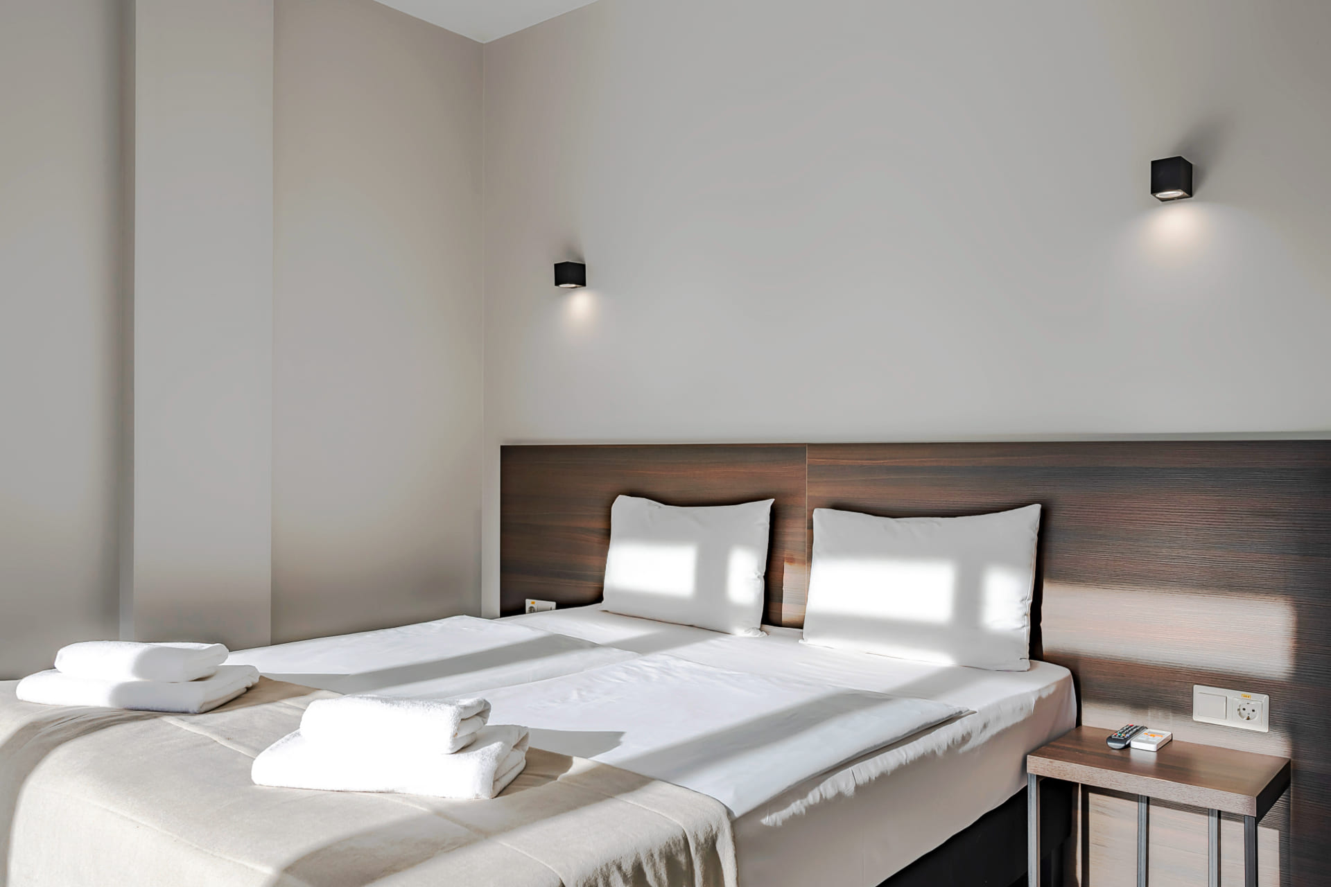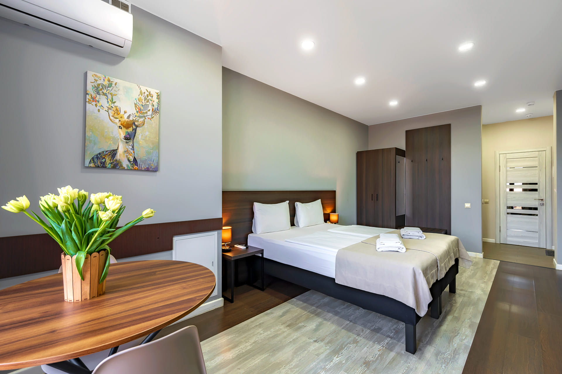 В отеле 7 категорий апартаментов, полностью оборудованных современной мебелью и необходимой техникой для комфортного пребывания, как во время отпуска или уикэнда, так и для долгосрочного проживания. Разрешено проживание с собаками весом до 5 кг за дополнительную оплату.