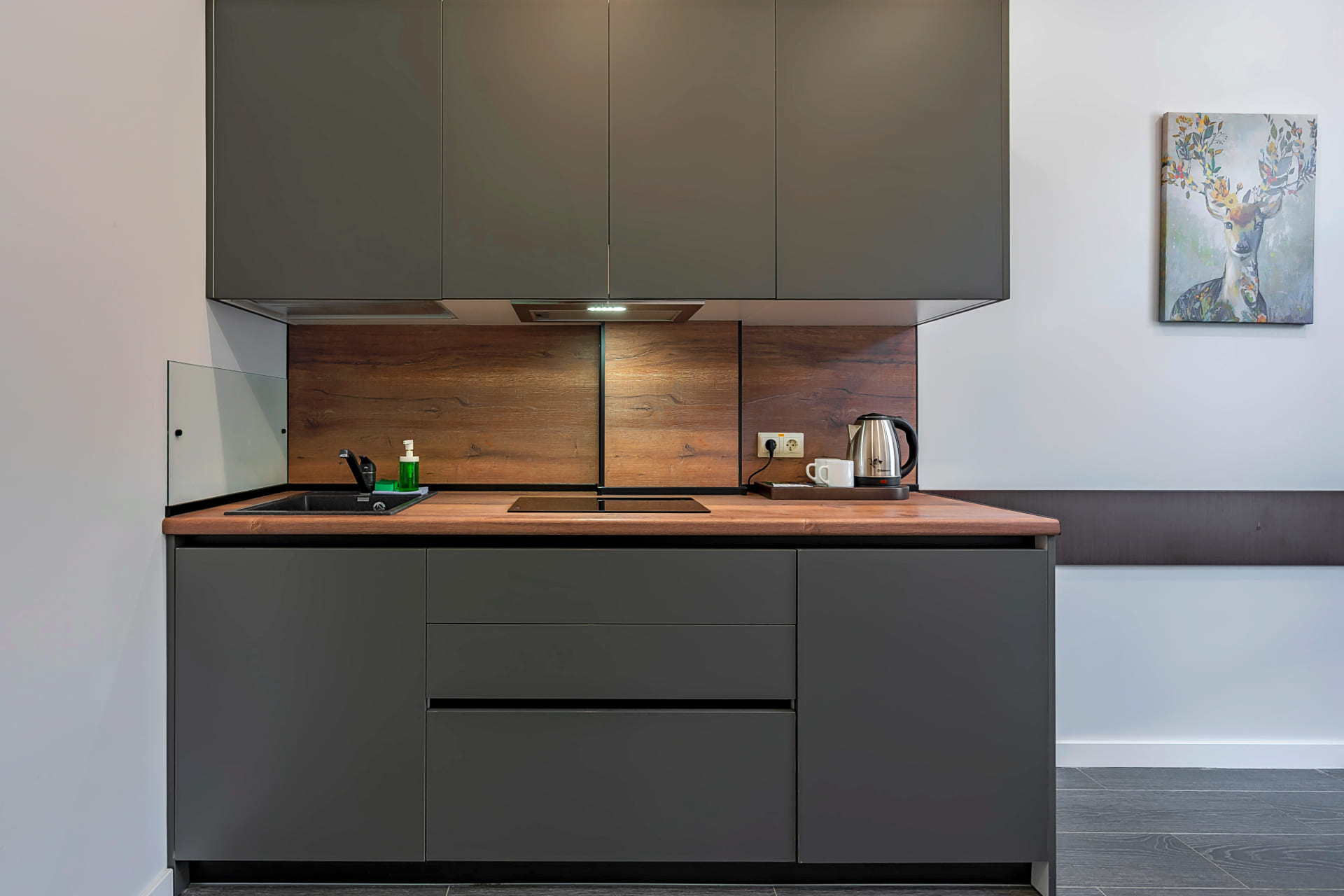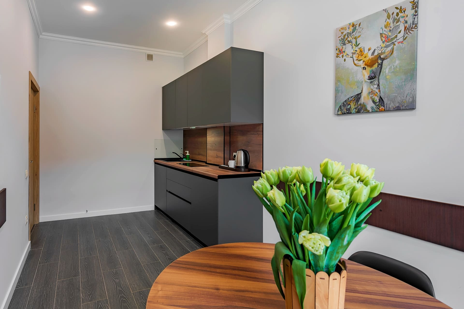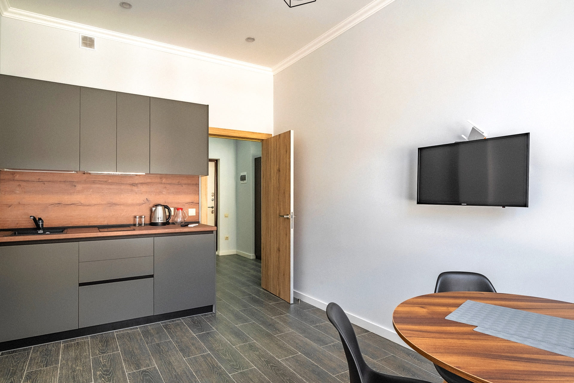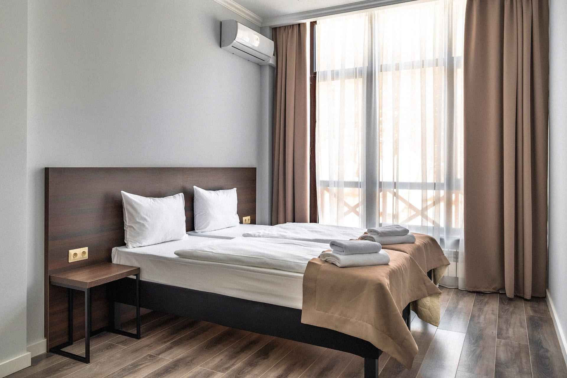 В отеле 7 категорий апартаментов, полностью оборудованных современной мебелью и необходимой техникой для комфортного пребывания, как во время отпуска или уикэнда, так и для долгосрочного проживания. Разрешено проживание с собаками весом до 5 кг за дополнительную оплату.